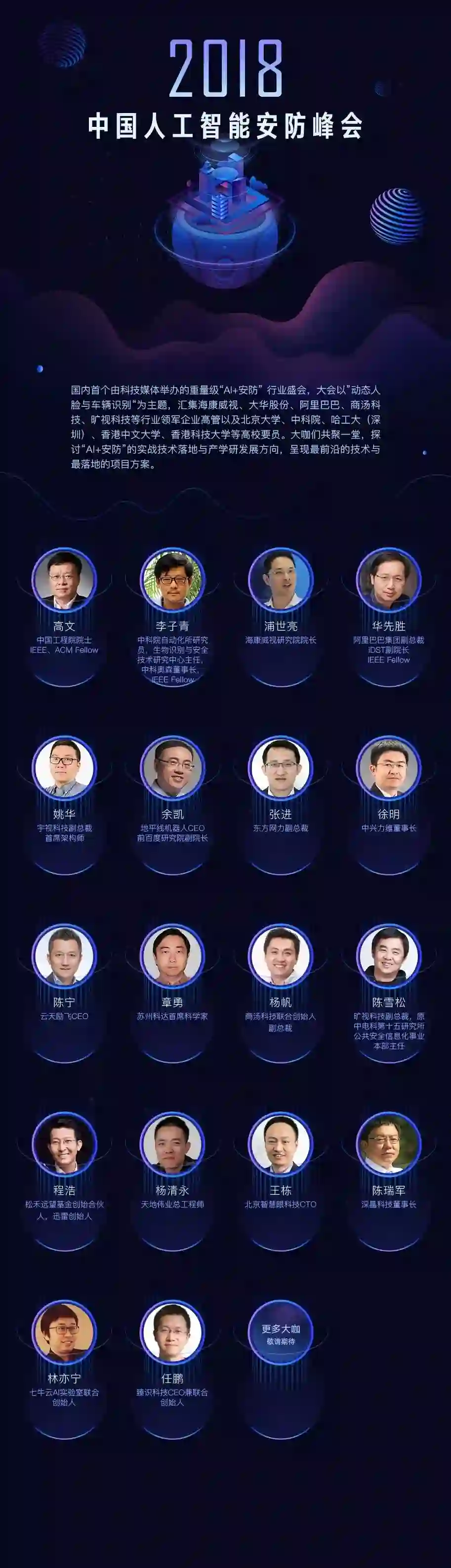 受访人名单:中国工程院院士高文、海康威视总裁胡扬忠、大华股份董事长傅利泉、阿里巴巴副总裁兼iDST副院长华先胜、东方网力董事长刘光、英特尔物联网事业部CTO张宇、宇视科技国际市场部总裁闫夏卿、苏州科达总经理陈卫东、天地伟业总工程师杨清永、商汤科技CEO徐立、旷视科技副总裁陈雪松、格灵深瞳CEO赵勇。