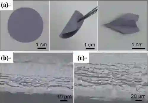 研制的新型层状结构催化耐火纸具有良好的柔韧性,可以任意弯曲和折叠,新型催化耐火纸的横截面的扫描电子显微图显示其具有层状结构