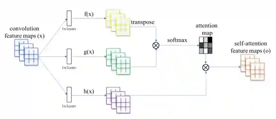 在这个实现中,自注意机制会应用到生成器和鉴别器的两个网络层。像素级的自注意力会增加 GPU 资源的调度成本,且每个像素有不同的注意力掩码。Titan X GPU 大概可选择的批量大小为 8,你可能需要减少自注意力模块的数量来减少内存消耗。