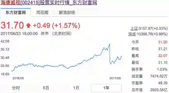 海康威视最新市值达到2925.55亿,而在3月30日我们第一次报道它时市值还只有1988.69亿,不到3个月的时间市值增长了约1000亿!!!