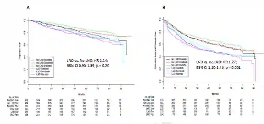 高危RCC是否需要辅助治疗还有争议,S-TRAC 研究和ASSURE研究抗血管生成的小分子药物可延长DFS但OS无获差异。既然辅助治疗目的是消除微小转移灶,可疑淋巴结阳性患者可能是淋巴结清扫术最获益的人群。二次分析ASSURE研究,评估淋巴结清扫在高危完全切除RCC的作用。首要目的是淋巴结清扫能否延长OS,次要终点是淋巴结清扫对DFS的影响。