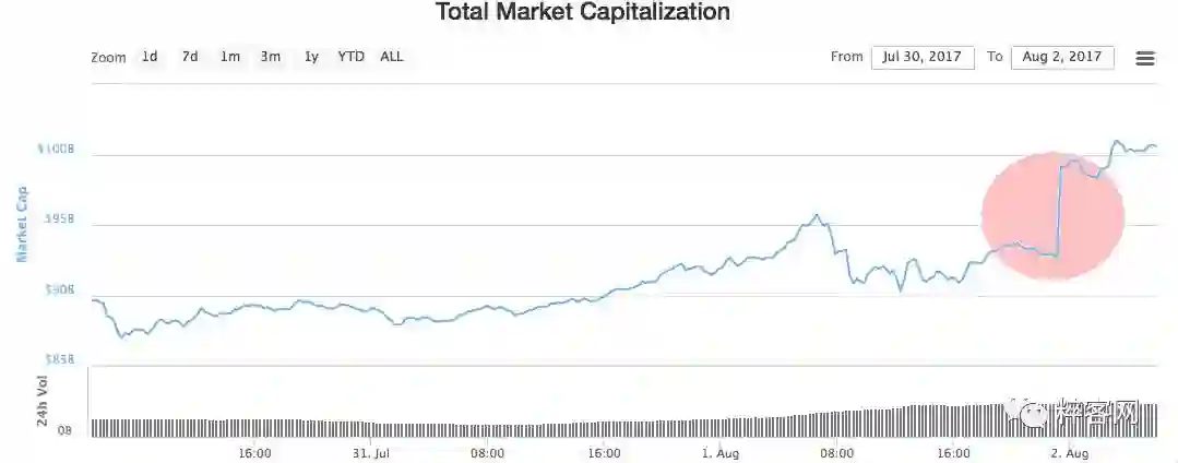 据统计,BCC 开采不到 15 分钟,加密数字货币的市场总额就从 900 亿增长至 1000 亿美元。而其中 75%的增长量归功于竞争币市场。