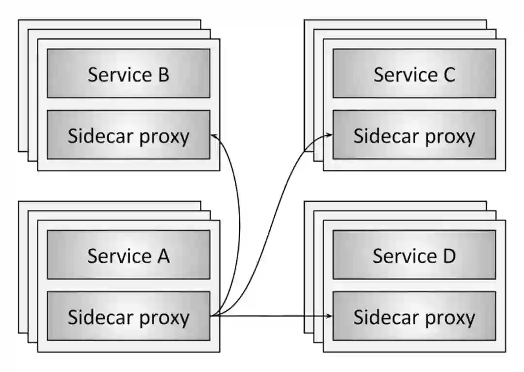 当该 sidecar 在微服务中大量部署时,这些 sidecar 节点自然就形成了一个网格: