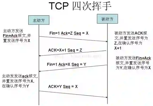 发起方向被动方发送报文段,Ack、Seq。然后进入等待 TIME_WAIT 状态。被动方收到发起方的报文段以后关闭连接。发起方等待一定时间未收到回复,则正常关闭。(第四次挥手:由浏览器发起,告诉服务器,我响应报文接受完了,我准备关闭了,你也准备吧)