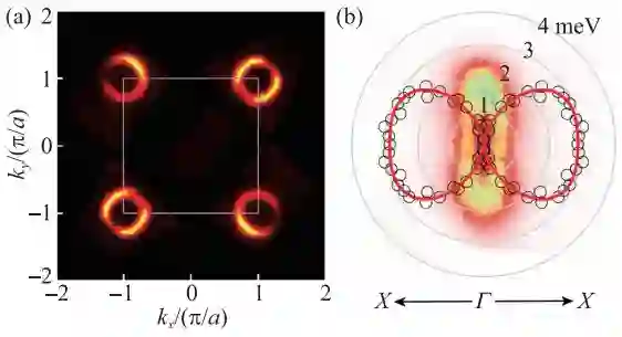 图9 铁硒超导体的单一电子型费米面与空穴型费米面能隙分布