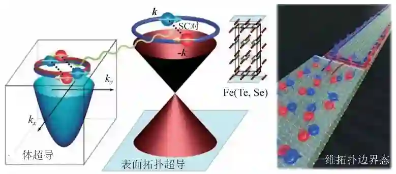 “扭曲破缺”的能隙结构。铁硒超导体和铁砷超导体之间最大的不同,就是前者更偏好电子掺杂,后者则电子和空穴皆可超导。尽管FeSe块体的载流子类型同时包括电子和空穴,即同时存在空穴型费米面和电子型费米面,但其常压超导Tc 却在 10 K 以下。而单层 FeSe 薄膜 、 K1-xFe2-ySe2 体 系 、 (Li1-xFex)OHFe1-ySe 体系、Li0.36(NH3)yFe2Se2体系等,都是电子型甚至是重度电子掺杂的,费米面仅仅剩下了单一电子型的(图 9(a))。即使对同样存在空穴型费米面的 FeSe单畴晶体而言,其空穴费米面也不是简单的圆形,而是纵向拉伸的椭圆形,对应的超导能隙恰恰是横向扭曲的纺锤形(图 9(b))。如此高度各向异性的费米面和超导能隙,说明体系中电子轨道有序对超导的影响非常大,这也是为何体系仅有结构相变但无磁性相变的原因。由此涉及铁基超导体中的一个重要概念——电子向列相,和晶格固有的四重旋转对称性不同,电子性质(如面内电阻、光电导、超导能隙、电子轨道、自旋激发等)将呈现二重对称性,即电子态发生了对称性破缺。“实有其表”的拓扑超导。铁硒超导体还有许多更迷人的物理性质,理论上预言该类超导体很有可能实现一种特殊的超导态“拓扑超导”,即能带结构上会在表面形成拓扑保护的表面态,可以稳定地存在,也极有可能实现马约拉纳费米子——一种正反粒子都是它自身的粒子。这意味着,铁硒超导材料有可能实现状态稳定的拓扑量子计算。实验物理学家经过多年的努力,确实获得了有关拓扑超导的一些信息。例如,中科院物理所潘庶亨研究组和丁洪研究组合作,在Fe1+yTe1-xSex中发现了马约拉纳费米子的表现之一——零能束缚态,中国科大的王征飞、美国犹他大学刘锋、清华大学薛其坤、中科院物理所周兴江等合作发现 FeSe/SrTiO3薄膜中的一维拓扑边界态,中科院物理所丁洪和日本东京大学 ShikShin研究组的张鹏等发现FeTe1-xSex和LiFe1-xCoxAs 均存在拓扑表面态 (图 10)。这些成果说明,拓扑超导或许在铁基超导体尤其是铁硒超导体中广泛存在,如何操控并应用该奇异的电子态成为铁基超导弱电应用研究的重大前沿课题之一。总结来说,铁硒化物超导体是“看似简单”,实则“内涵丰富”。是否存在更多体系或更多形式的铁硒类超导体,临界温度是否可能突破液氮温区,微观电子态是否可能存在更多的新奇量子物性?这些问题都尚待回答,有关铁硒基超导体的研究也正在持续不断地进行中。