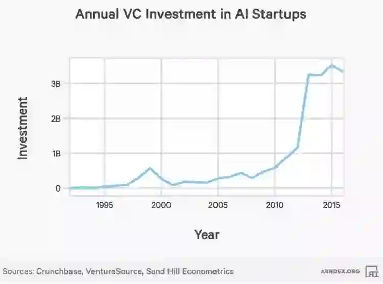 从2000年至今,美国人工智能行业的创业公司数量增加了14倍,从47个增至649个。去年,风投对这一领域的投资金额猛翻6倍,达到35亿美元。