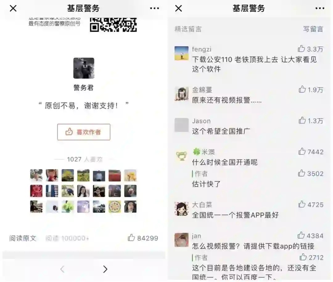 “基层警务”的提醒直逼10万赞