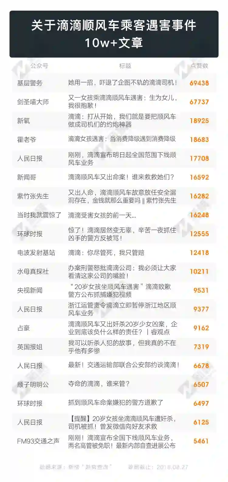 关于滴滴顺风车乘客遇害文章10w+点赞TOP20