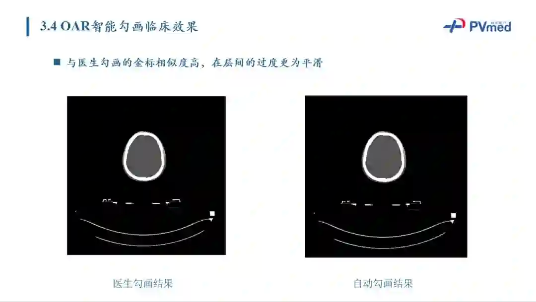 一:靶区勾画精准度还需进一步提升,尤其是算法。面向来自不同医院或不同成像设备,影像泛化性能,需要不断提高勾画结果的精准程度,以更好地体现临床的价值。