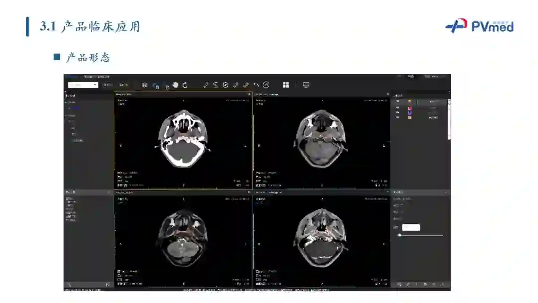 在OAR分割临床效果方面,与医生勾画的金标相似度高,并且在层间的过度更为平滑。除了自有的放到云平台的产品,柏视医疗还针对鼻咽喉勾画产品的特点进行多样化落地应用。目前作为唯一的第三方人工智能模块,与飞利浦IntelliSpaceDiscovery(ISD)平台实现集成,落地吉大一附院。对于此类产品,柏视作为第三方的医疗模块进行平台级合作。