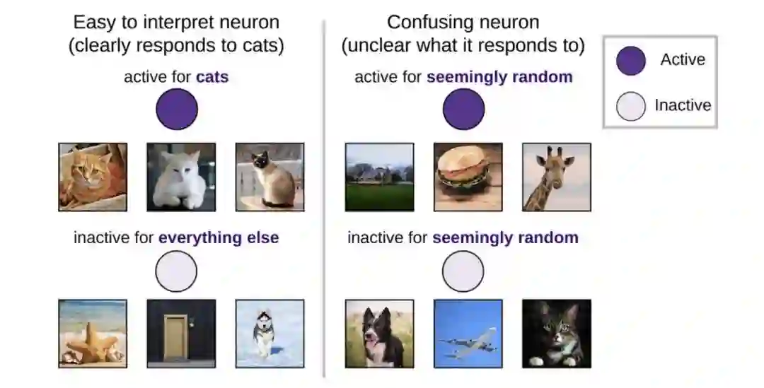具有明显响应模式(例如,对猫活跃,对其他所有活动不活跃)的神经元比看到随机图像活跃和不活跃的神经元更容易解释。