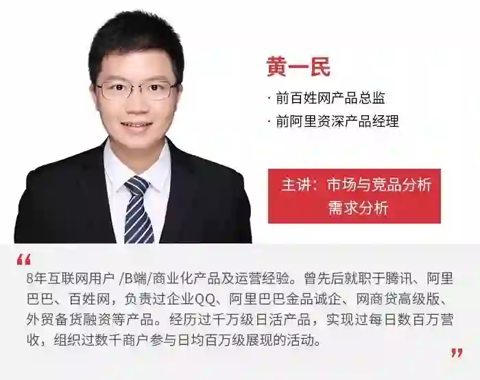 课程为期3个月,内容包括产品经理迭代的全流程内容。从市场分析和竞品分析,到如何进行需求挖掘、分析和管理,再到产品规划及产品设计,还有产品运营推广。适合缺乏产品经验的同学获得第一次产品经历,更快上手产品工作。