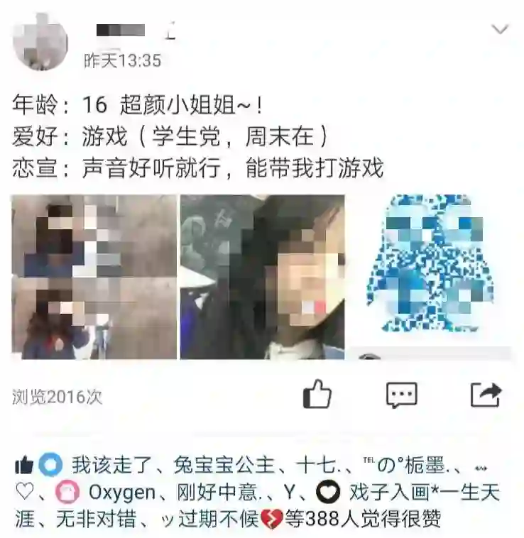 扩列的玩法也不止通过 QQ 群,随着 00 后扩列的需求扩大,有人开始出售自己的空间来发扩列帖,只要交几块钱,就能「上墙扩列」。