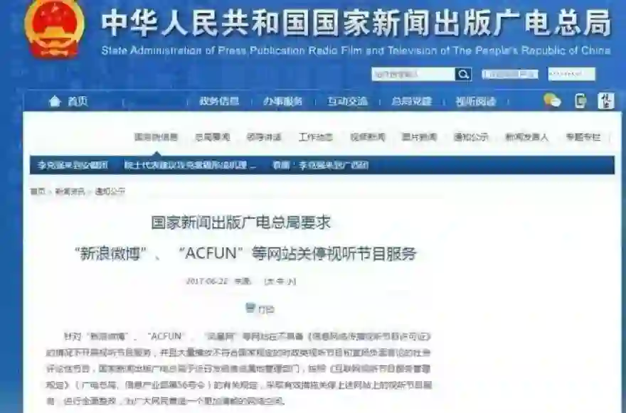 但是2017年6月,A站因不具备《信息网络传播视听节目许可证》的情况下开展视听节目服务,被国家新闻出版广电总局要求关停视听节目服务,进行全面整改;2017年9月5日,北京市文化市场执法总队又责令A站对视频节目内容进行整改。