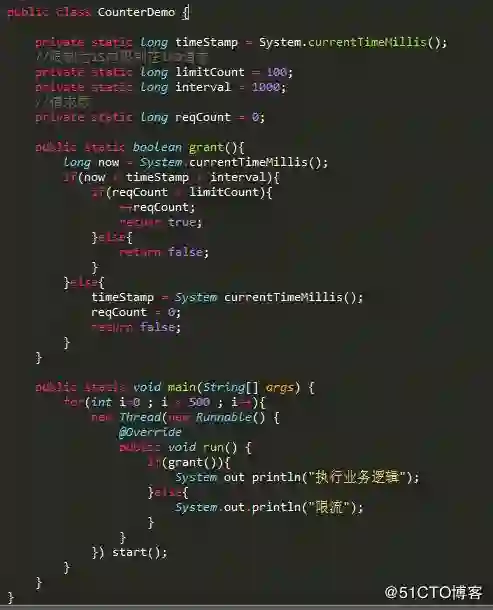 计数器是一种比较简单的限流算法,用途比较广泛,在接口层面,很多地方使用这种方式限流。在一段时间内,进行计数,与阀值进行比较,到了时间临界点,将计数器清0。