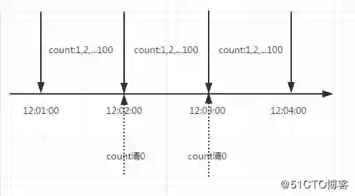 这里需要注意的是,存在一个时间临界点的问题。举个栗子,在12:01:00到12:01:58这段时间内没有用户请求,然后在12:01:59这一瞬时发出100个请求,OK,然后在12:02:00这一瞬时又发出了100个请求。这里你应该能感受到,在这个临界点可能会承受恶意用户的大量请求,甚至超出系统预期的承受。