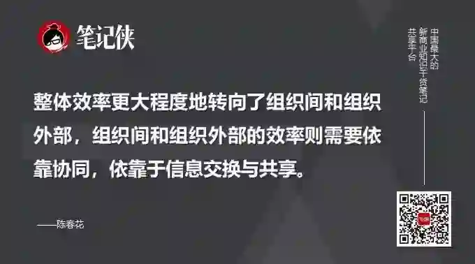 所以,整体效率也更大程度地转向了组织间和组织外部,组织间和组织外部的效率则需要依靠协同,依靠于信息交换与共享。