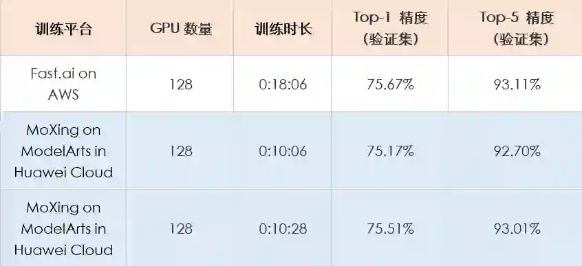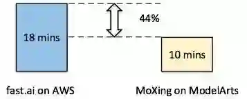 采用与fast.ai一样的硬件、模型和训练数据,ModelArts可将训练时长可缩短到10分钟,创造了新的纪录,为用户节省44%的时间