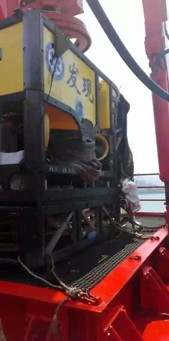 这个并不是每艘船上都有的,下图是科学号上的ROV,叫做发现。个头挺大,但是有萌萌的 “眼睛”和 “爪子”。
