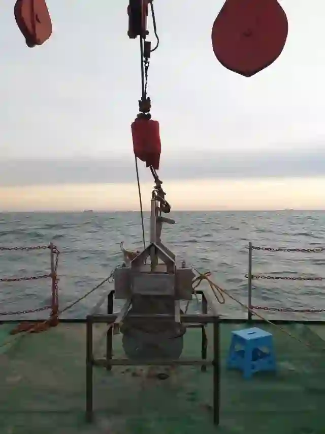 ADCP的中文全名是声学多普勒流速剖面仪,主要用于海水流速和流量的测量,其制备依据就是多普勒效应,它的换能器是固定安装在船底。就像这样:
