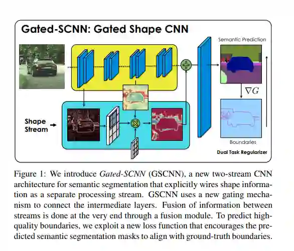 这个架构由一个 two-stream CNN架构组成。在该模型中,使用一个单独的分支来处理图像的形状信息。利用形状流来处理边界信息。实现参考代码:https://github.com/nv-tlabs/gscnn