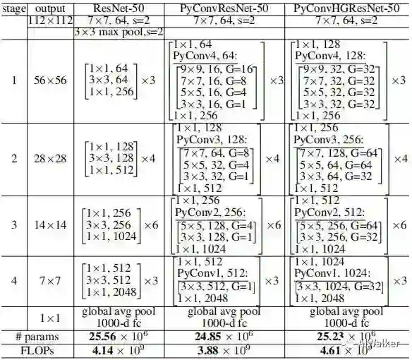 【Happy导语】该文参考SIFT的多尺度特征提取思路设计了一种新颖的金字塔卷积,它不用于其他类似方法的关键点在于:卷积核的多尺度。同时为了尽可能的降低整体计算复杂度,在每个group内再一次进行组卷积,以确保金字塔卷积的计算量与标准卷积的计算量相当。笔者认为这篇论文思想简单,易于实现,效果惊人。推荐各位稍微花点时间了解一下这篇文章(注:亮点在Appendix部分)。