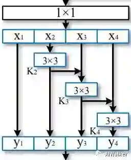 再再再比如南开大学提出的Res2Net,其实也是一种多尺度卷积,结构如下: