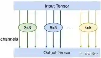 再比如谷歌提出的MixConv,其多尺度卷积示意图如下: