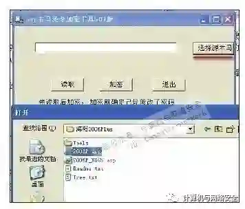 下面先用它为海阳顶端木马加密一下。打开“ASP木马加密免杀工具”后单击“选择源木马”按钮,在弹出的对话框中选择要加密的脚本木马,如图1所示。选择完毕后单击“读取”,再单击“加密”按钮就可以加密成功。
