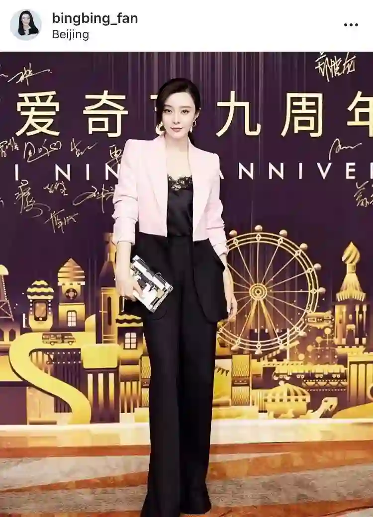 范冰冰在Instagram分享出席爱奇艺九周年庆典的照片