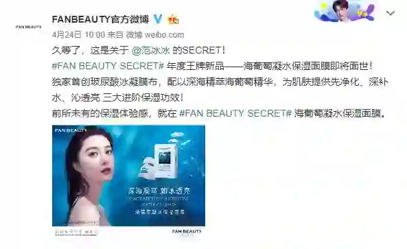 范冰冰个人品牌Fanbeauty推出的最新面膜