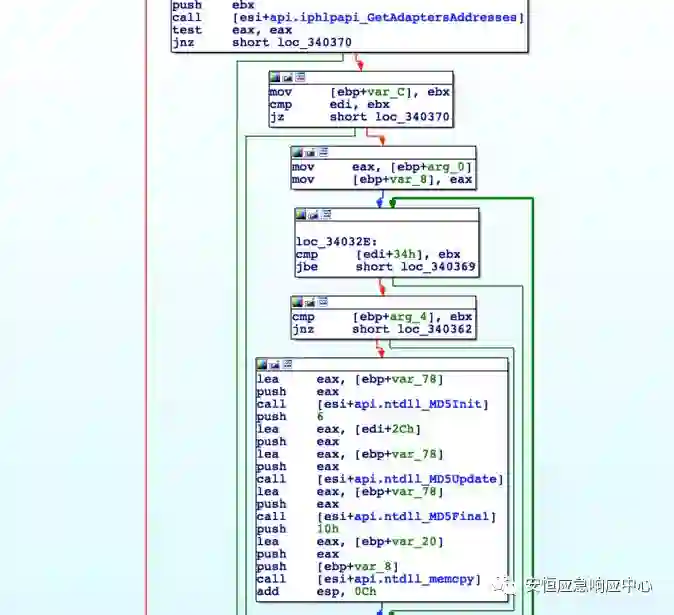 样本会获取电脑的mac地址并对其进行MD5加密