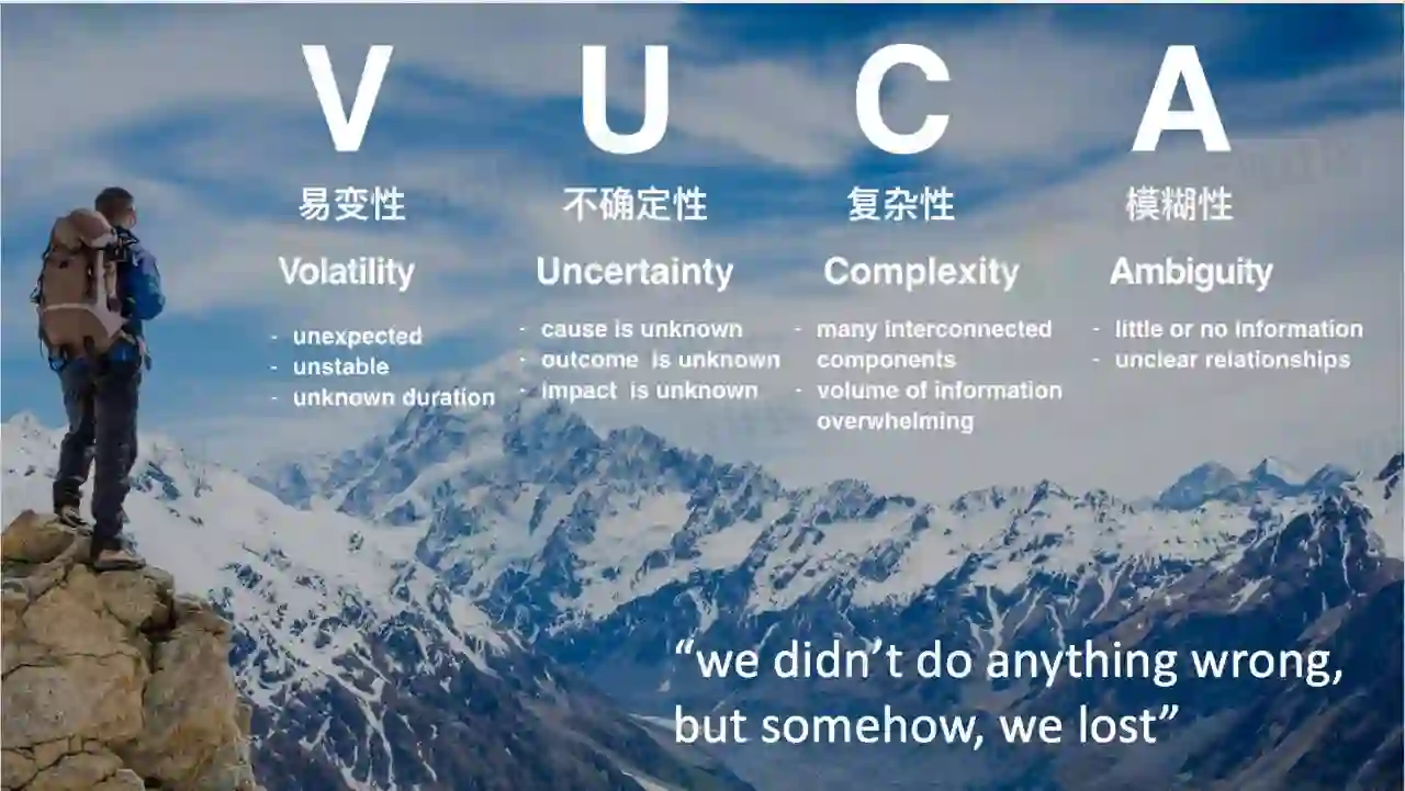 这就是VUCA的时代,我们面临着易变性、不确定性、复杂性、模糊性的多重打击和考验。新的市场不断涌现,新的挑战者层出不穷,无论是守城还是开疆拓土,价值假设和增长假设都是我们需要的去攻克的。