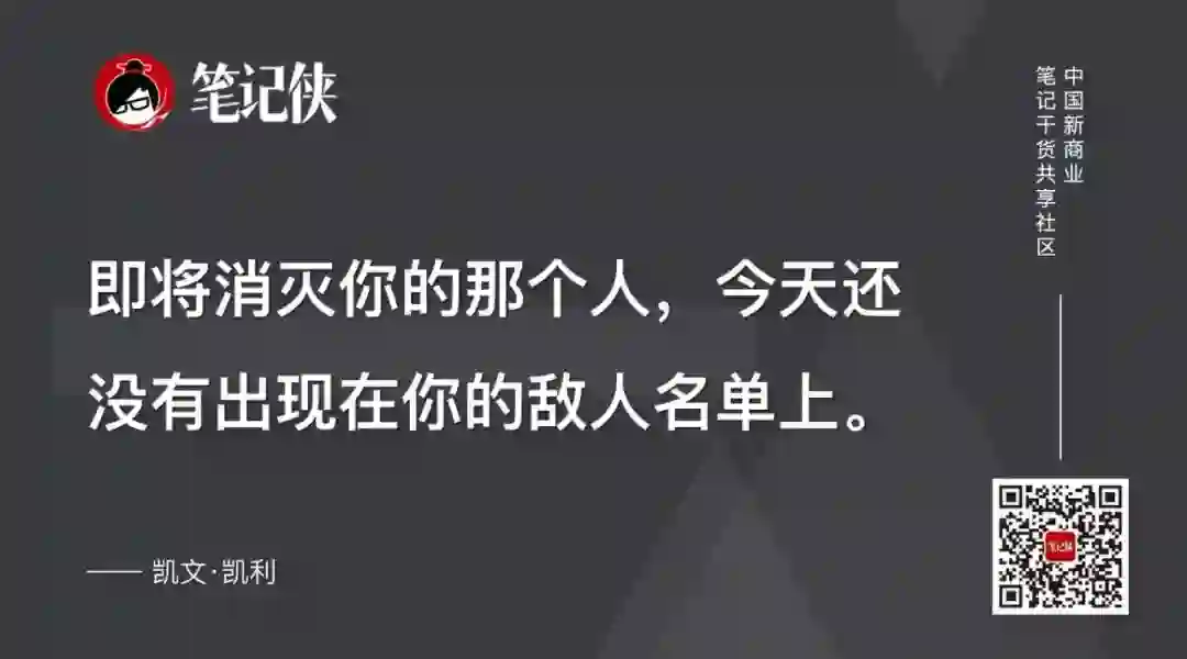 2014年,我曾在北京碰到凯文·凯利,当时马化腾问他“谁是消灭腾讯的对手”?凯文·凯利说的一句话让我至今印象深刻,他说:“即将消灭你的那个人,今天还没有出现在你的敌人名单上。”