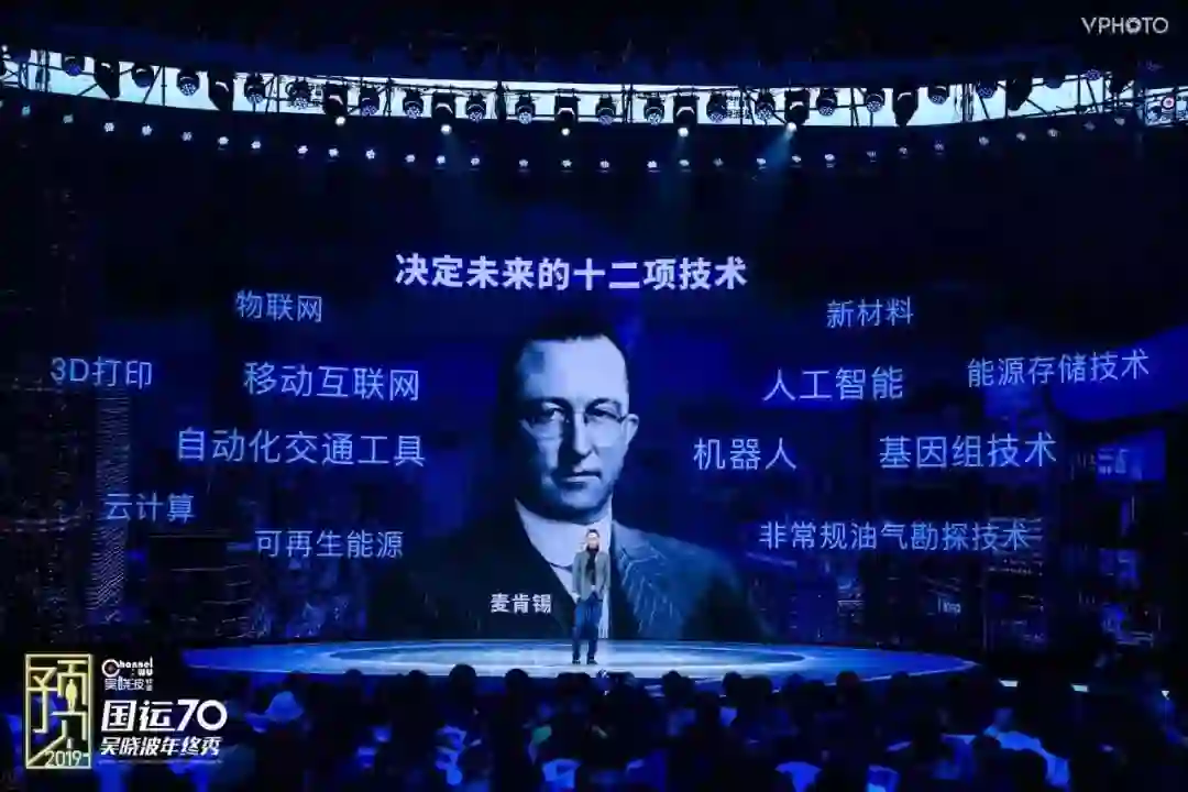今年我写了一本书《激荡十年,水大鱼大》,写的是2008年-2018年的中国企业史。如果2008年我们有这样的年终秀,没有人跟你谈区块链、4G、云计算——这个词2006年在硅谷的一篇论文上第一次出现,没有人跟你谈人工智能、语音技术、柔性生产线、新能源汽车。