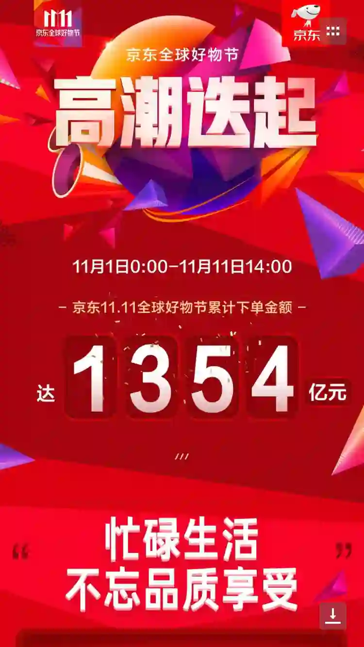 截止下午两点,京东的销售额也突破了1354亿元。