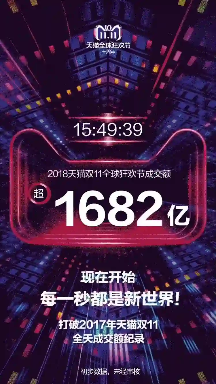 最新数据显示,15点49分39秒,天猫销售额超1682亿!超过了2017年双11全天交易额。你们都干了什么呀!