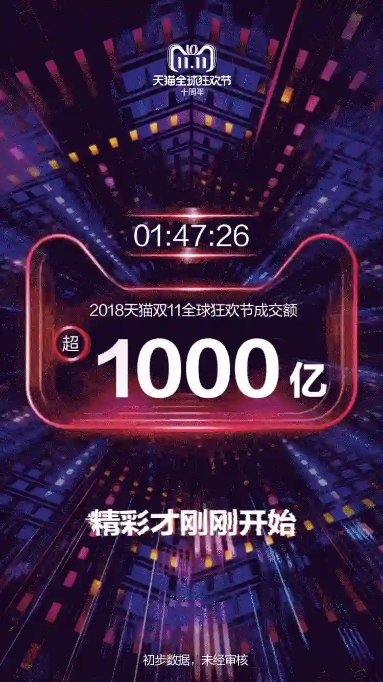 今年的双11大促期间,凌晨1点47分,阿里宣布天猫双十一成交额超过了1000亿,比去年达到1000亿成交额的时间缩短了整整7个小时。