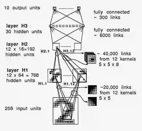 更新:Yann说(通过Facebook的评论)ConvNet工作可以追溯到1989年。“它有大约400K连接,并且在一台SUN4机器上花了大约3个星期训练USPS数据集(8000个训练样本)。”——LeCun
