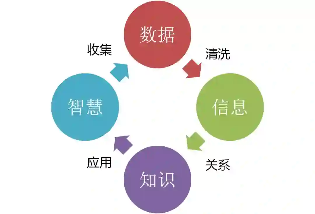 所以数据的应用分这四个步骤:数据、信息、知识、智慧。