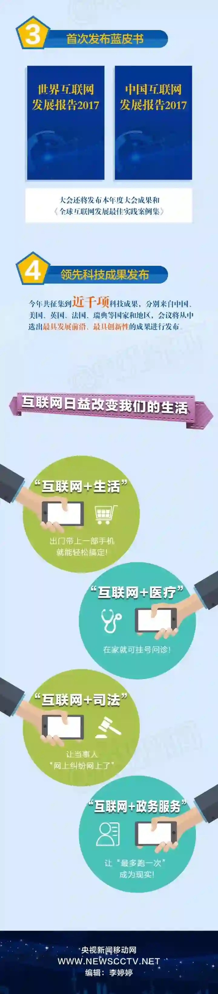 本次大会将首次发布蓝皮书《世界互联网发展报告2017》和《中国互联网发展报告2017》,客观全面展现世界各国的发展实力和发展特点,以及中国互联网的发展现状和未来的态势。