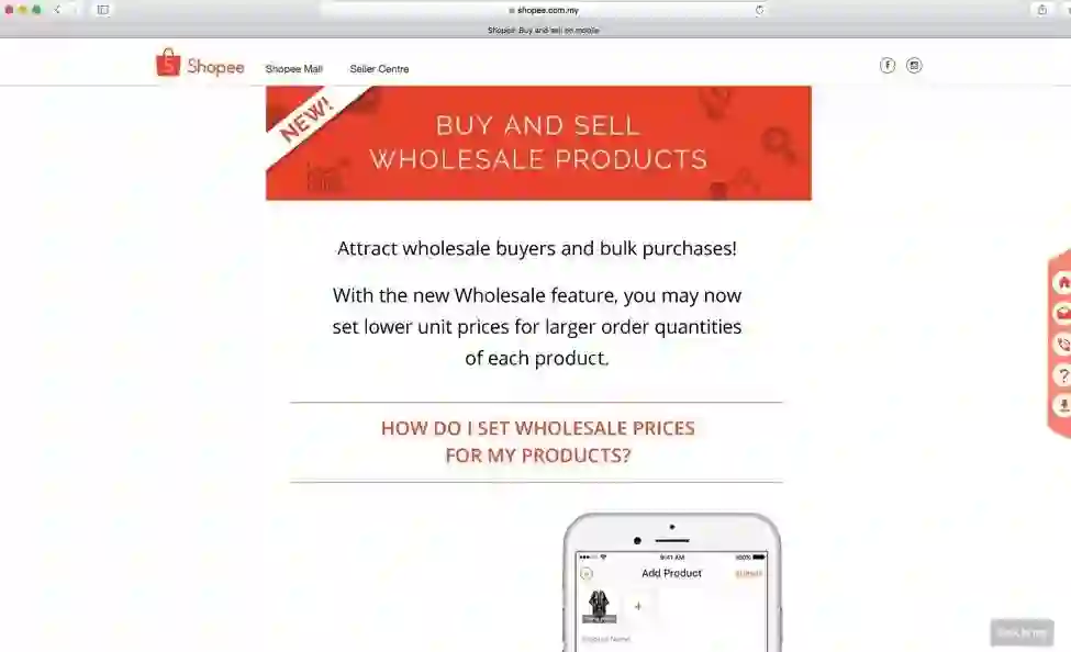 马来西亚的 Shopee 提供批发功能