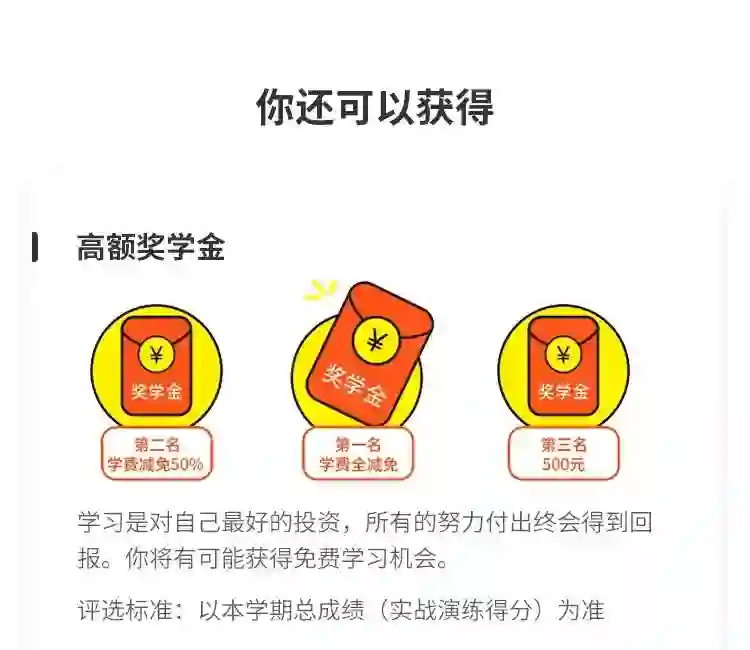 课程更会以本学期总成绩为准,评出前三名同学颁发奖学金,