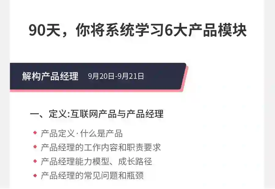 ,能够帮你在3个月的时间内,建立产品知识体系,掌握产品必备的技能,胜任产品工作。