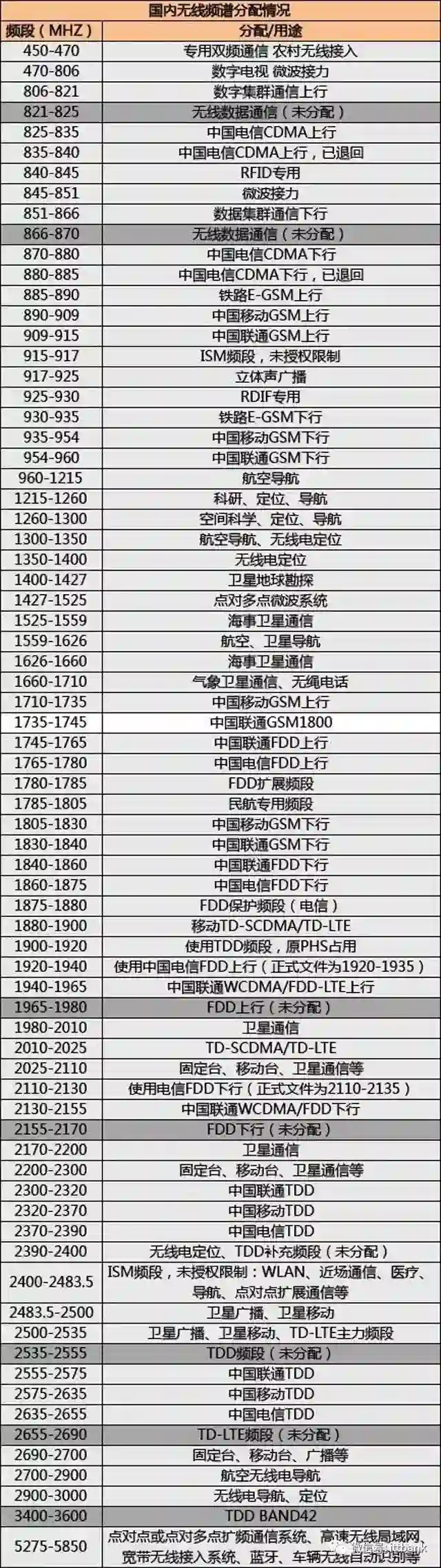 1)黄色保护带:原移动用1880-1900(20M),电信用1860-1875(15M),由于TD和FDD之间有干扰,需留1875-1880间的5M出来做隔离带。电信把小灵通占用频段(1900-1920)清出来还给移动后,移动就拥有完整的从1880-1920的40M频段,但隔离带由移动撤出1880-1885间的5M。这样,电信就可以用1860-1880做完整的20M载波。移动用1885-1920的35M。