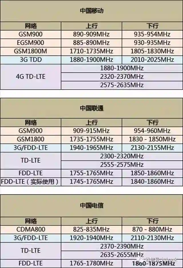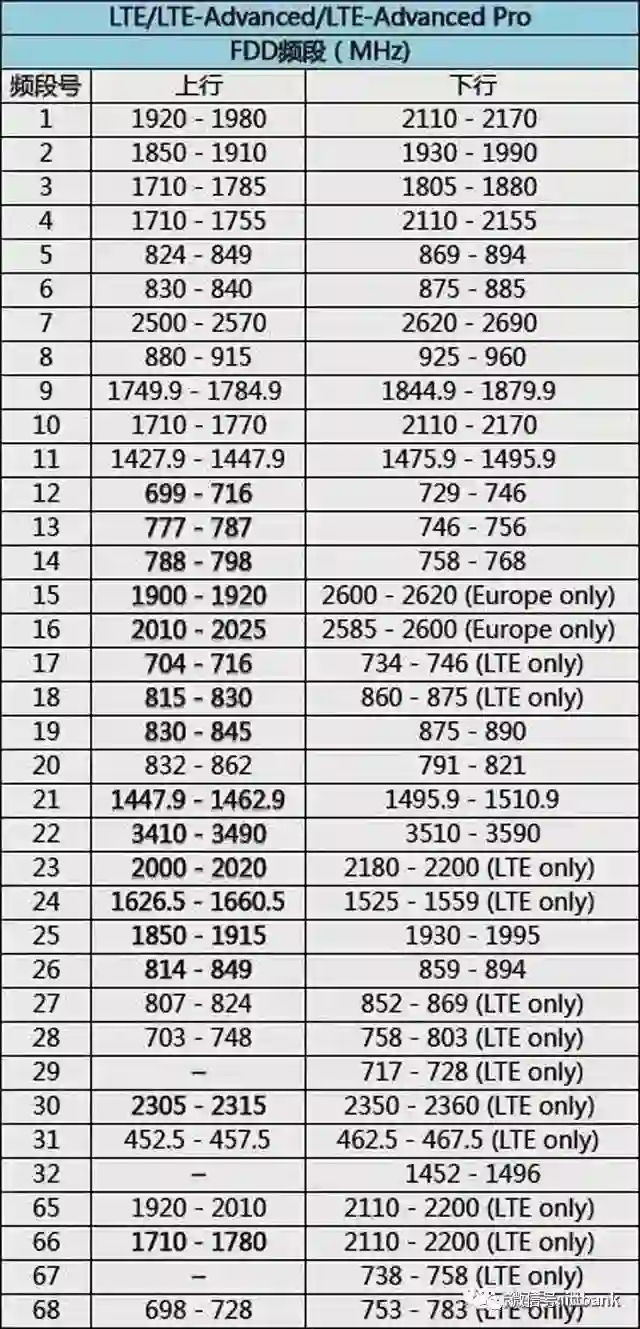 3)根据最近《工信部同意关于中国联通调整部分频率用于LTE组网的批复》,中国联通可以在原2G和WCDMA频段909-915/954-960,1735-1750/1830-1845,1940-1965/2130-2155上重耕LTE FDD。