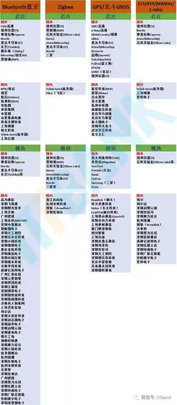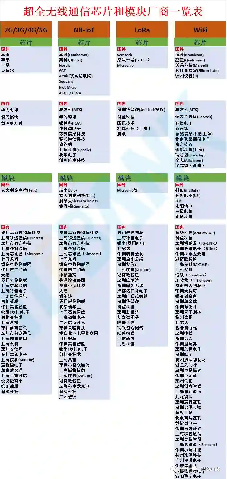 超全无线通信芯片和模块厂商汇总,值得珍藏~