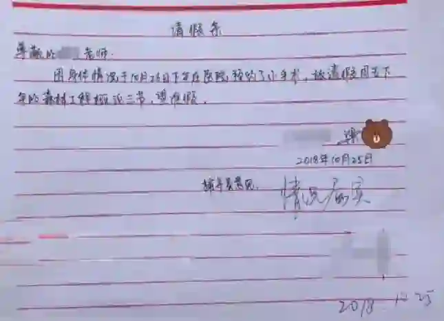 今年10月,南京某高校一大学男生因为脱俗的请假原因被众多媒体频频报道。