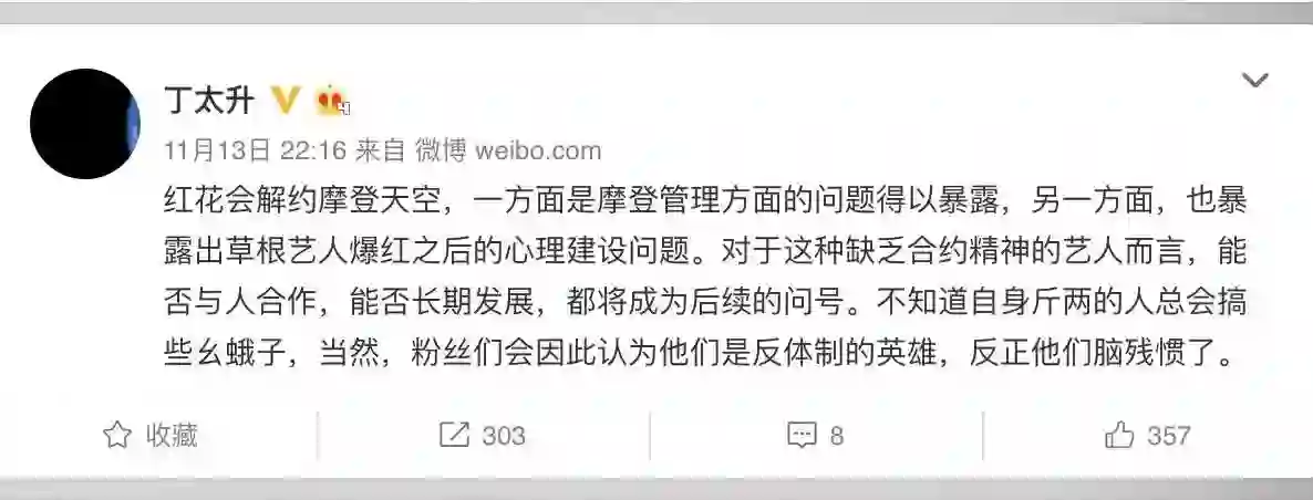 与之相反,摩登天空流露出了错愕。作为独立音乐公司的代表,摩登天空具有敏锐的洞察力和得天独厚的行业资源。一个是日益飞升的地下团地,一个是可依靠的音乐公司,二者的联手本可以所向披靡。但事实上,从签约、爆红到解约,二者的关系快速降到冰点。